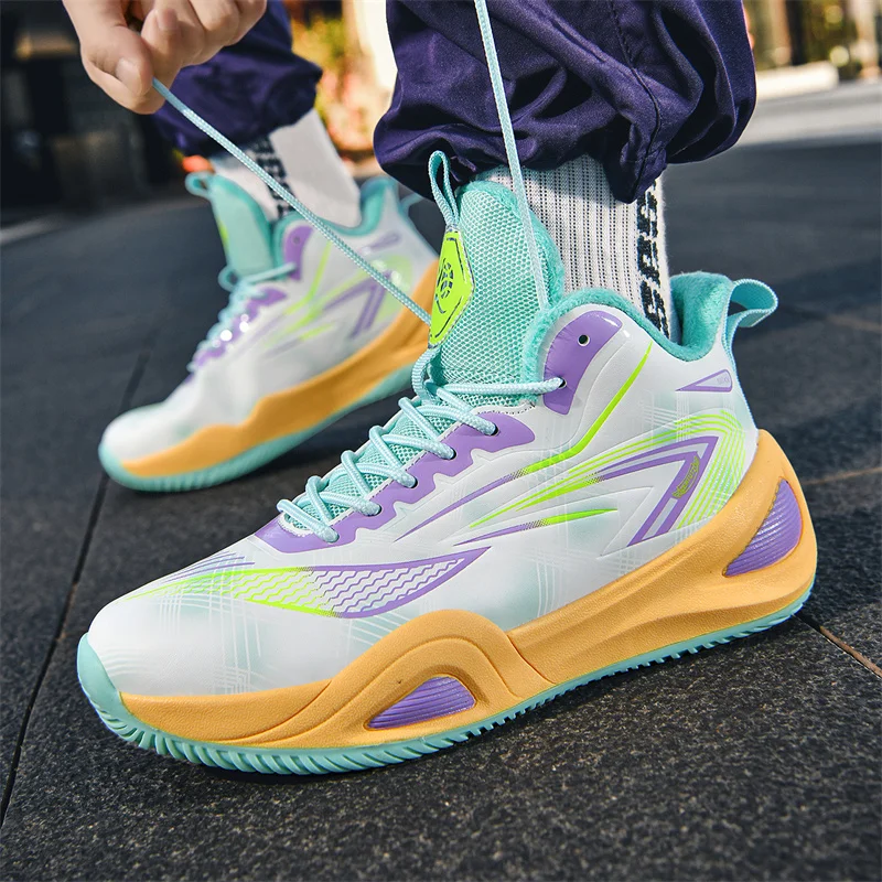 Unisex Basketball Shoes Winter Fleece Warm Leather 2025 New Sports Shoes Shock-absorbing Anti Slip Rebound Flat Basketball Boots