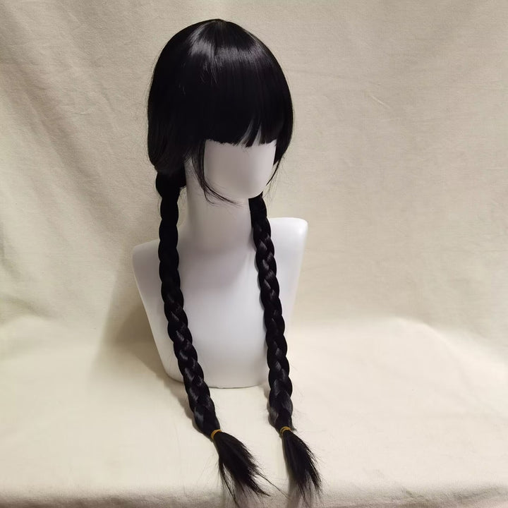 Wednesday Addamsms Cosplay Wig Long Black Braids Hair Heat Resistant Synthetic Wigs with Bangs for Halloween Party