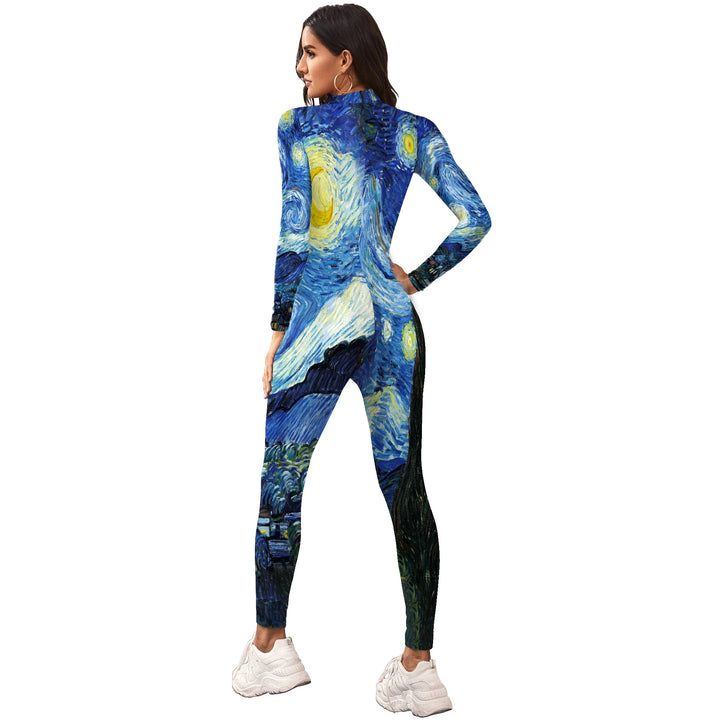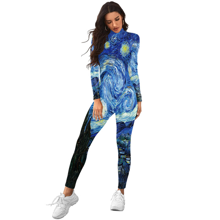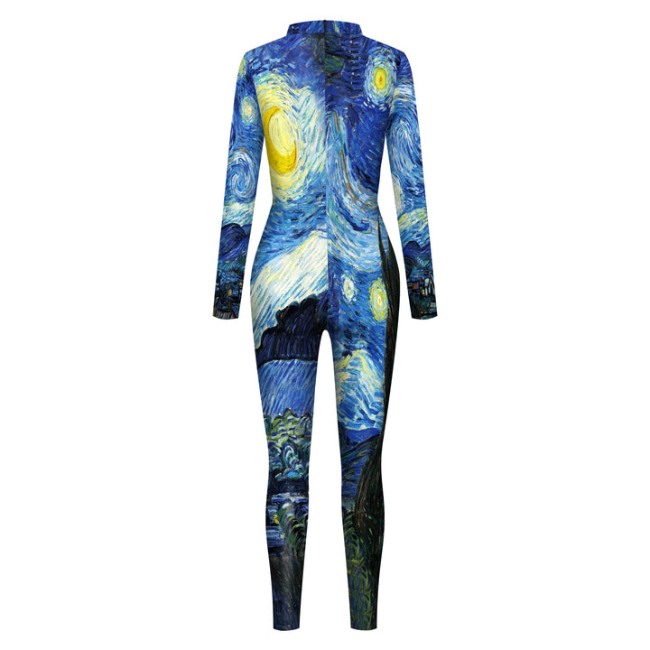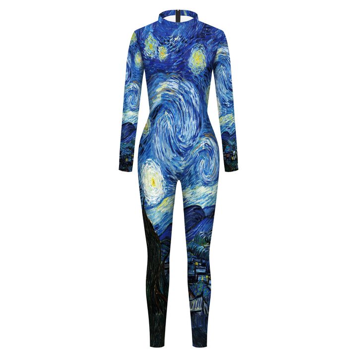 Women Long Sleeve Bodysuits Van Go gh Star and Moon Night Printed Cosplay Costumes Adult Sexy Tight Elastic Clothing Jumpsuits