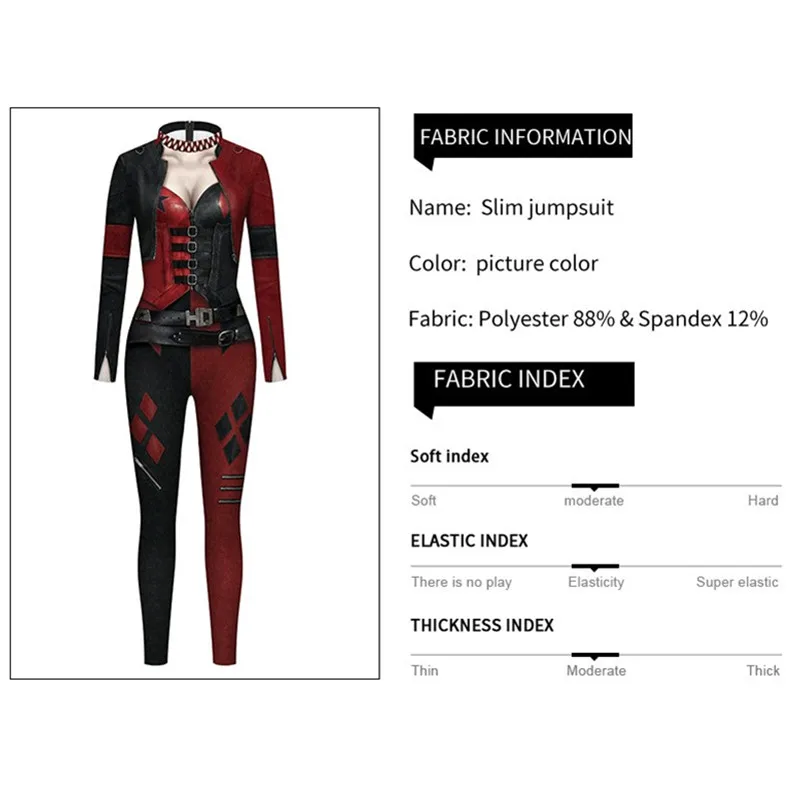 Women Sexy Superhero Harleenen Quinzelel Cosplay Jumpsuit Catsuit Character Costumes Zentai Halloween Bodysuit Fancy Dress