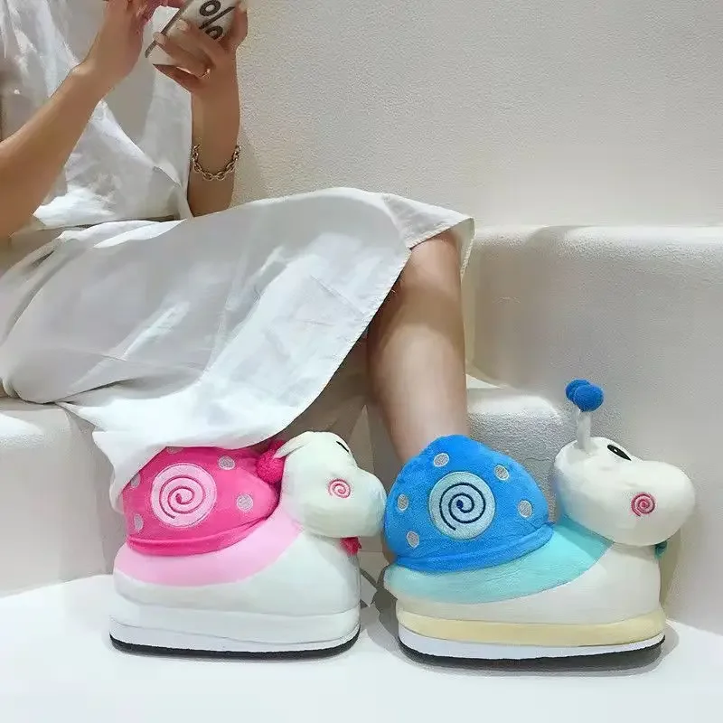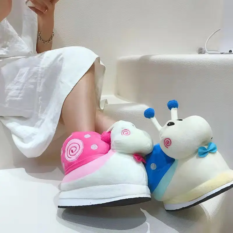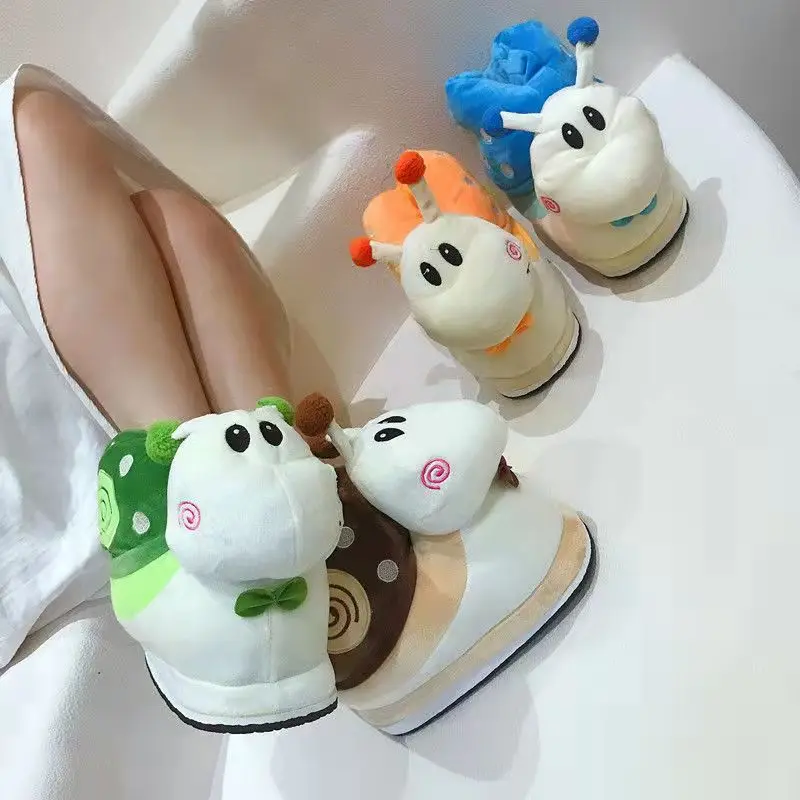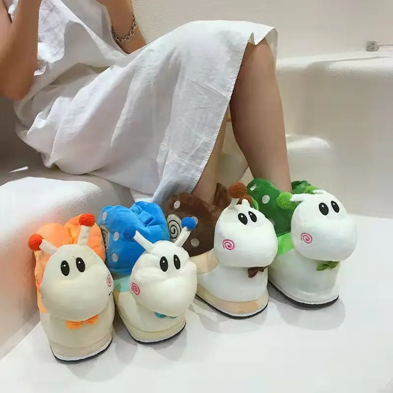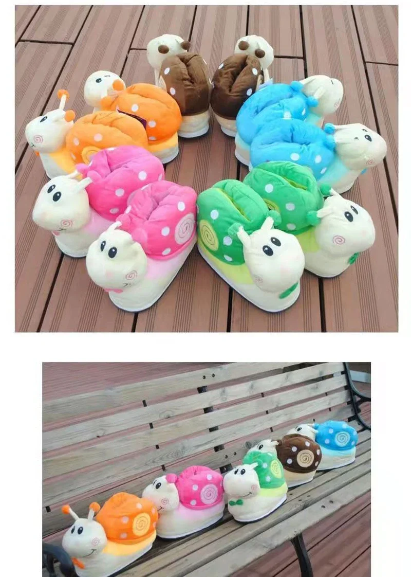 Women Gary Snaill Slippers Plush Slippers Fluffy Animal Floppy Home Kids Winter Slides Snail Pom Pom Furry Fur Sandals Girls