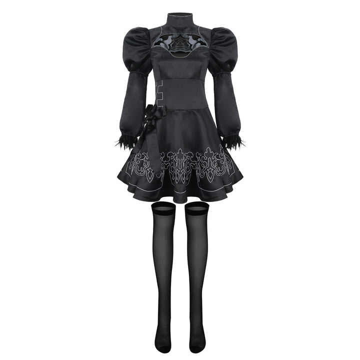 YoRHaha No.2 Type B Cosplay Costume for Female NieRer Automatata 2B Black Lolita Dress Stockings Fancy Ball Outfits